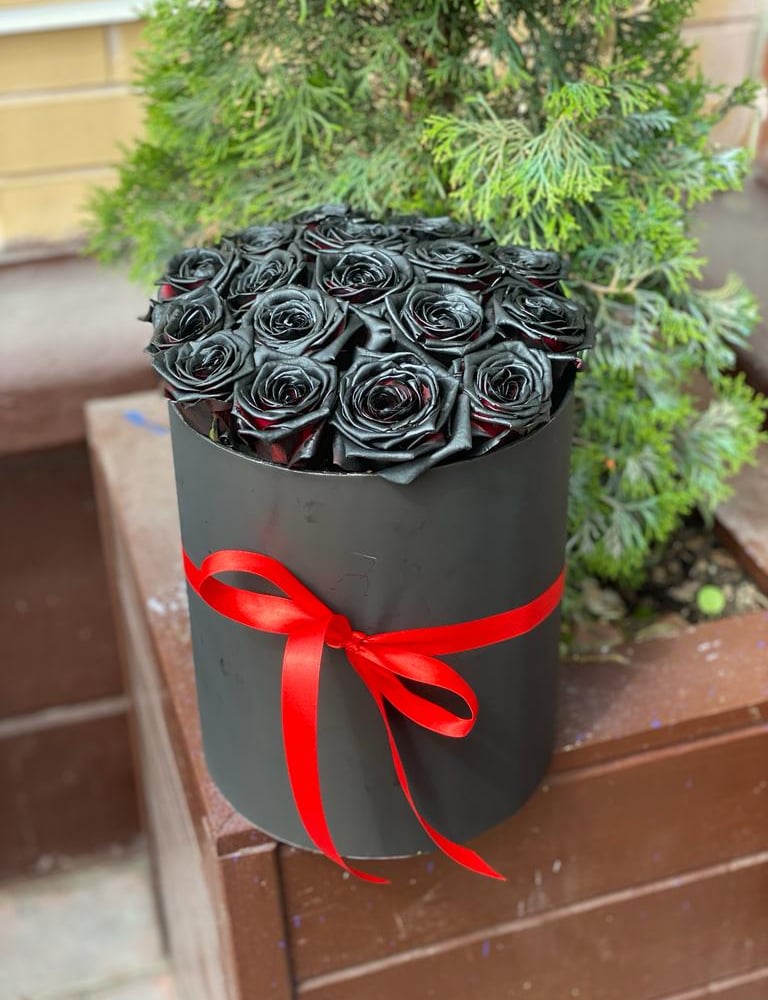 Шляпная коробка с цветами «Черные розы»