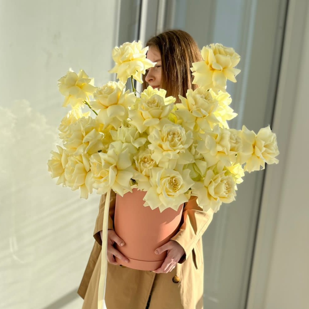 Шляпная коробка с цветами «Чистые чувства» из роз