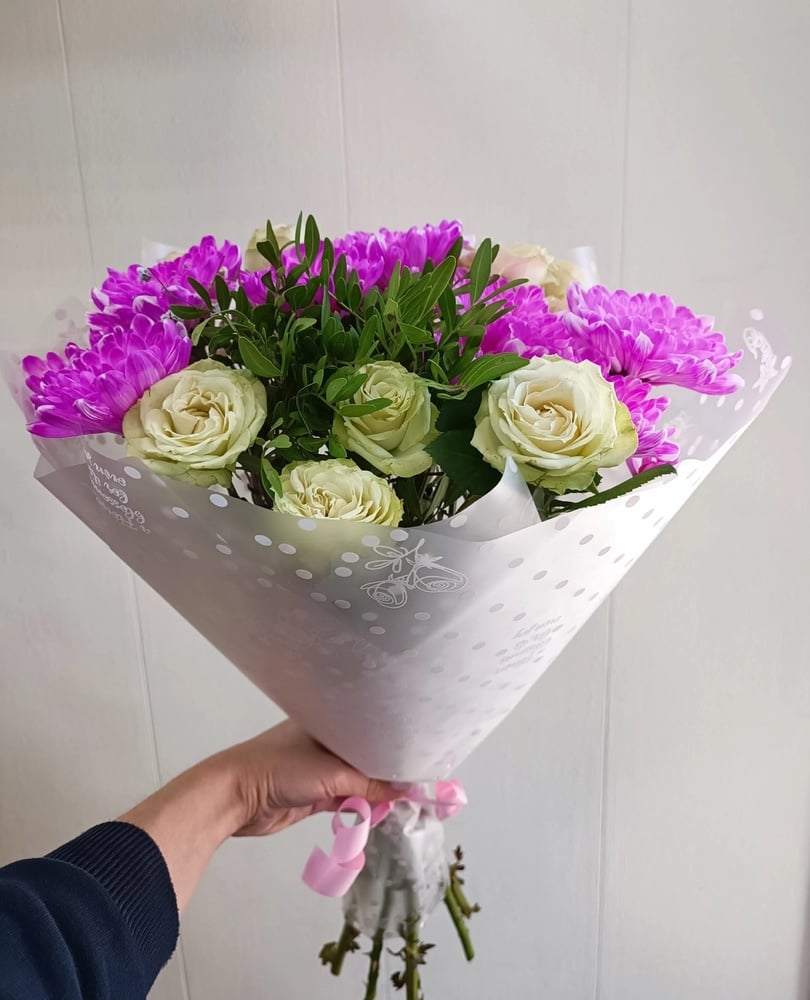 Букет «Чудесный день» из роз и хризантем