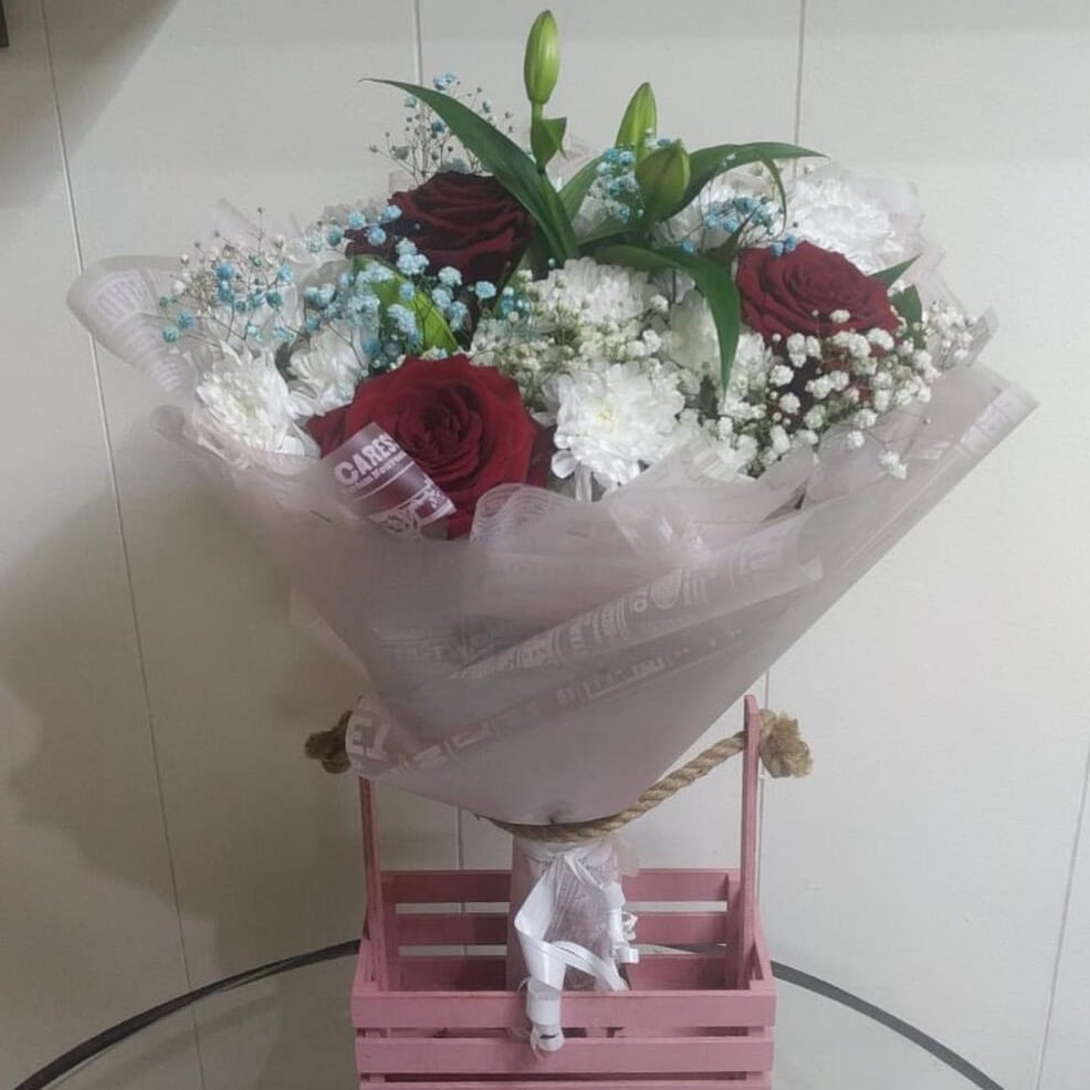 У нас, вы можете заказать: - роскошные букеты; - цветочные композиции в шляпных коробочках; - композиции в форме сердца; - гигантские и премиум букеты; - подарочные корзины и корзины с цветами; - коробочки с цветами и сладостями; - букеты из ягод и фруктов; - мягкие игрушки; и другие цветы и подарки, которые никого не оставят равнодушными! Указаны примерные размеры букета, чтобы вы могли представить его внешний вид и масштаб, но фактически размеры могут немного отличаться