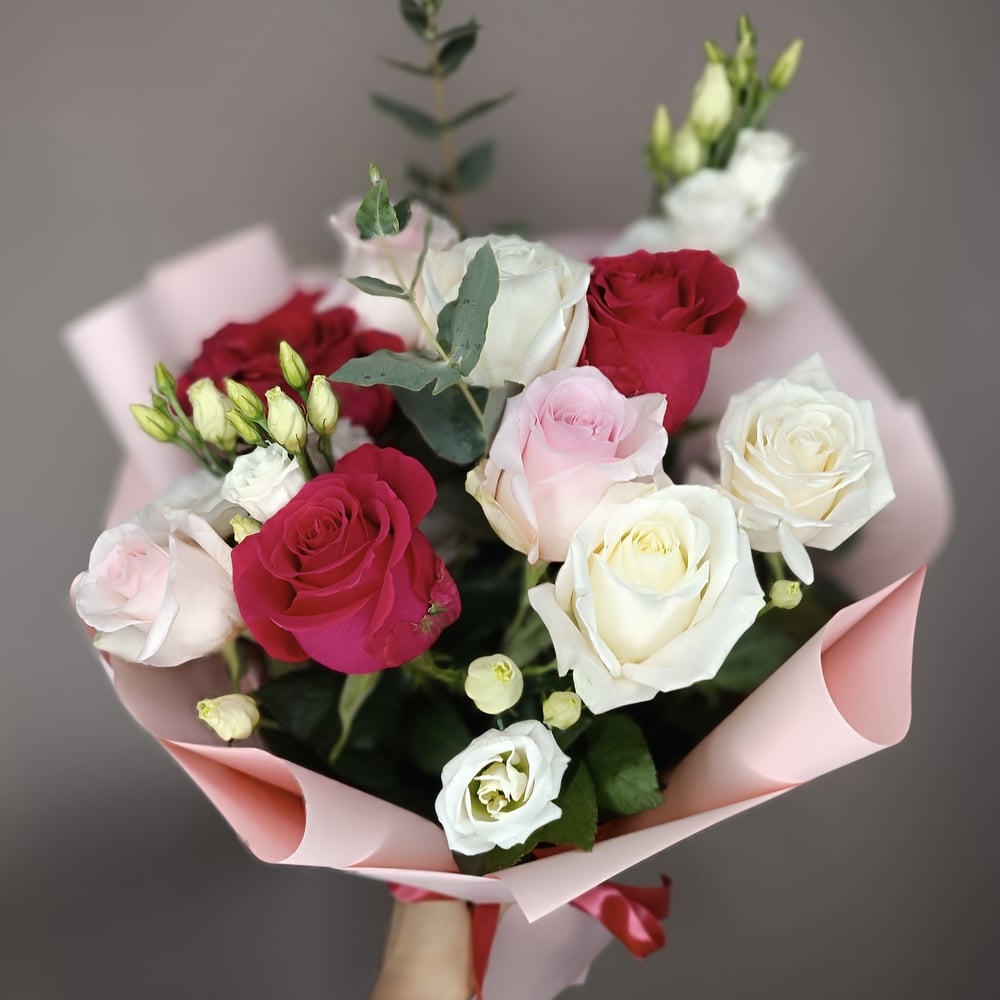 Букет «Чудо с розами и эустомой»