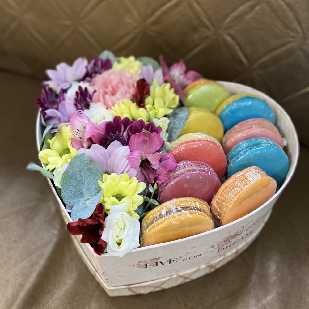 Чудесная коробочка с цветами и наисвежайшими макарунами!