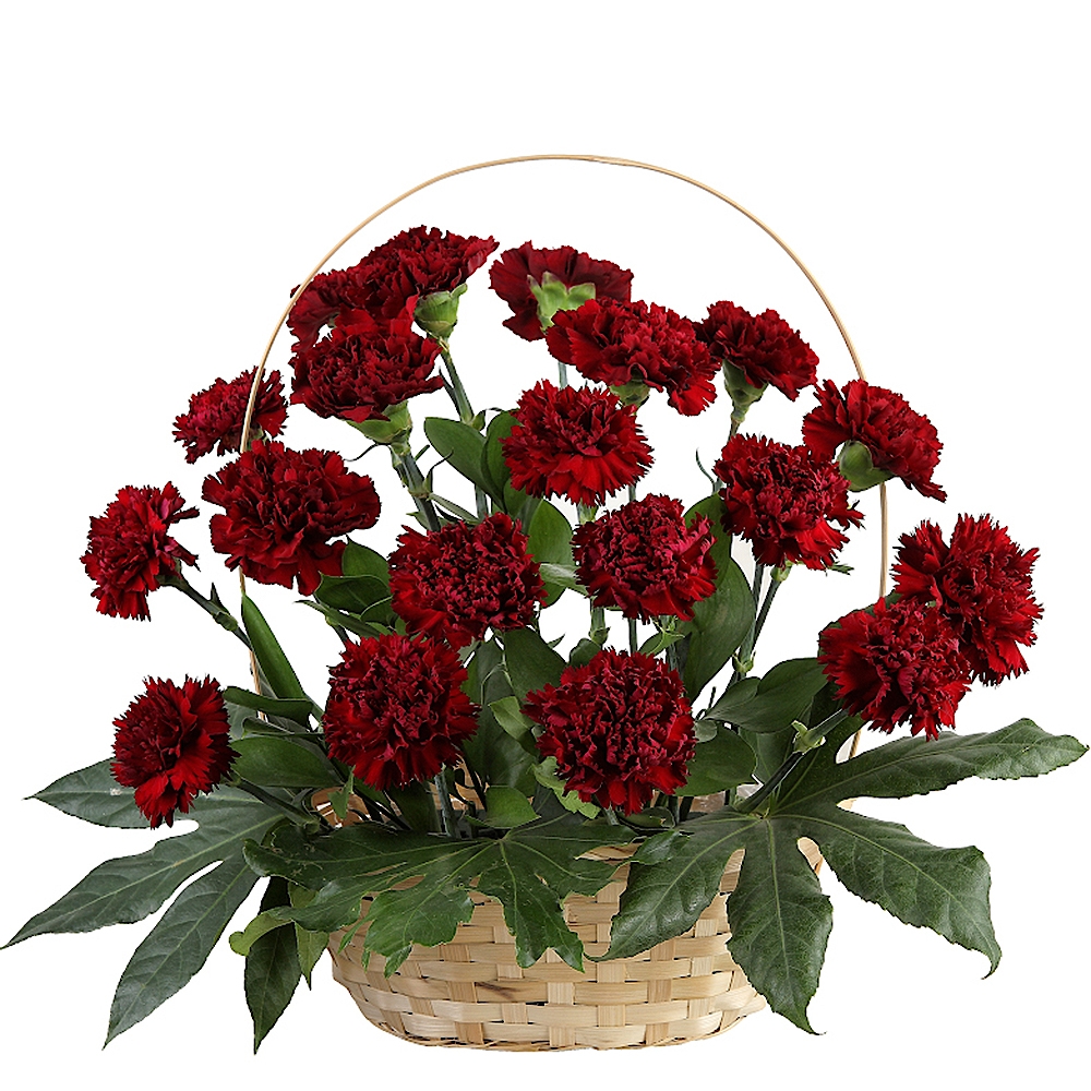 Этот красивый букет состоит из гвоздики, рускуса и фатсии. Гвоздики придают букету жизнерадостный оттенок своими яркими цветами. Зеленые листья рускуса и фатсии прекрасно дополняют цветы и придают им интересную текстуру. Букет представлен в большой корзине, что придает ему деревенский и естественный вид. На дне корзины расположена флористическая пена, которая надежно удерживает цветы и сохраняет их свежесть. Этот букет цветов идеально подходит для любого случая и обязательно порадует сердца получателей.