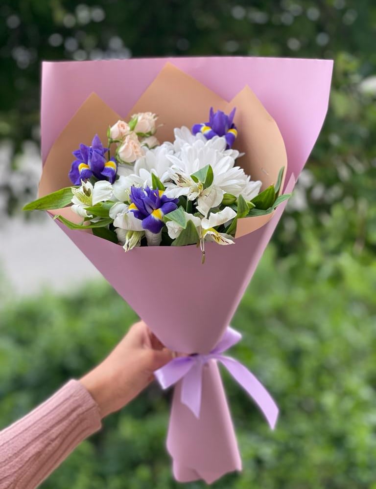 Букет «Дарвин» из ирисов и альстромерий
