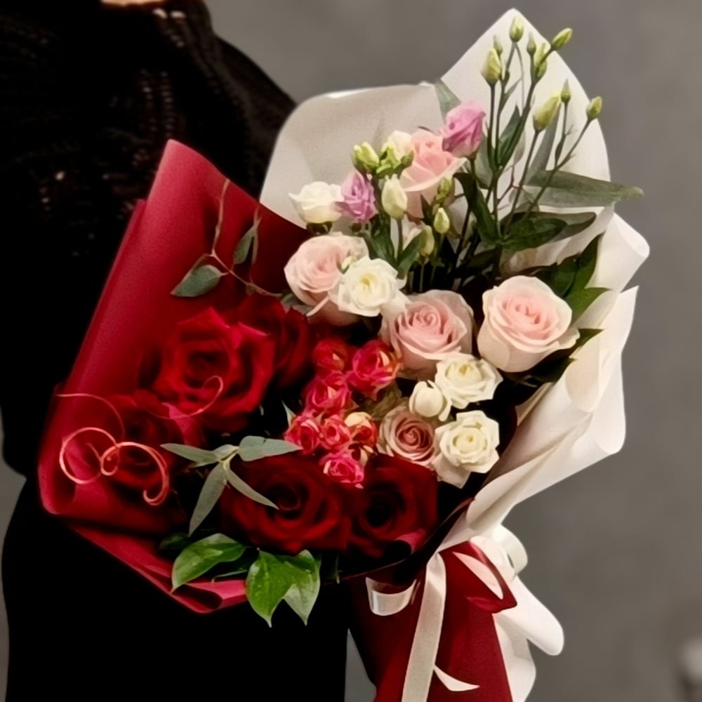Букет «День и ночь» из роз и эустом