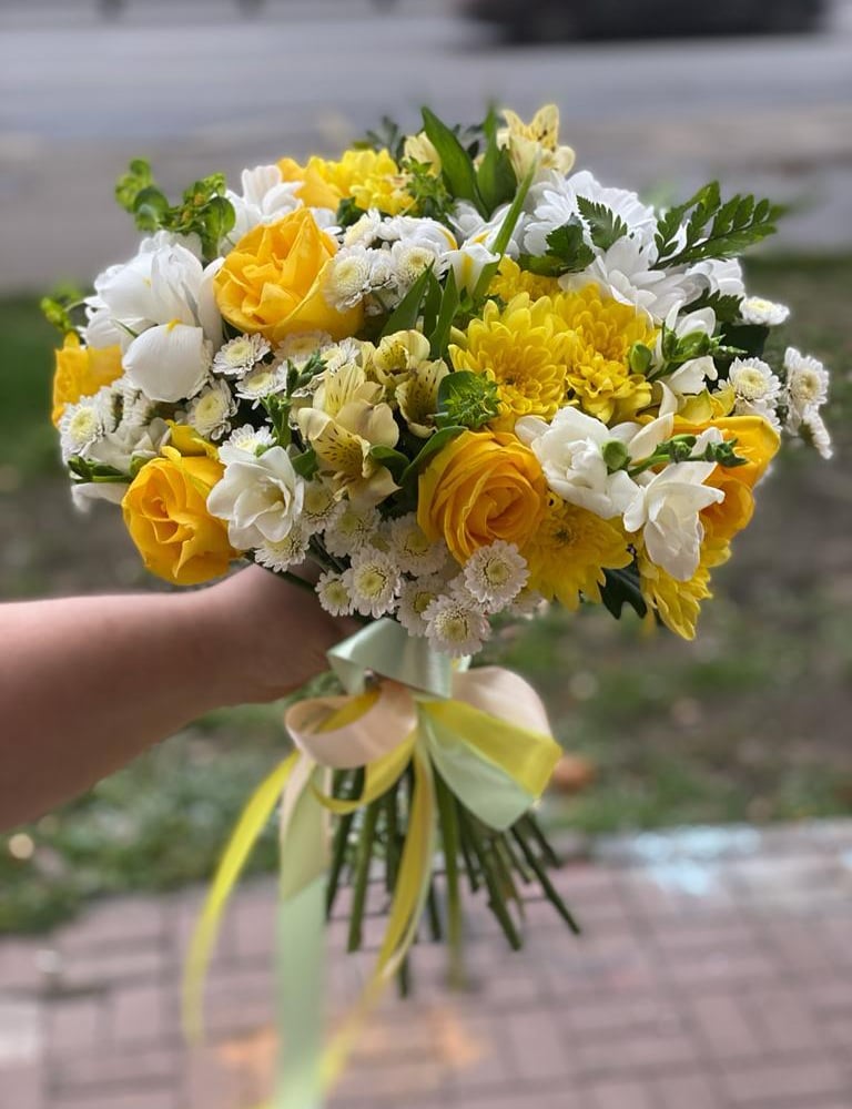 Букет «Добрый день» из хризантем и фрезии