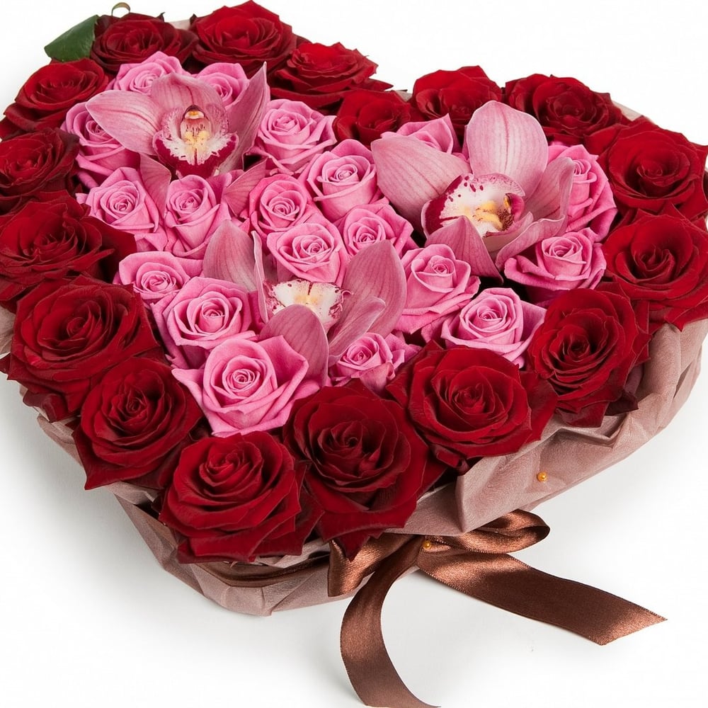 Композиция в форме сердца «Долгожданное счастье» из роз и орхидей