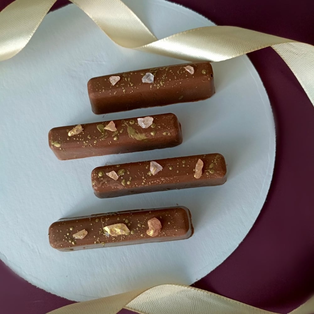 Дубайский шоколад. Молочный шоколад бельгийский, фисташковая паста , тесто катаифи. Украшен кристаллами из карамели , упаковывается в коробочку , вес 85гр