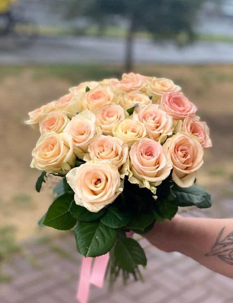 Розовые розы – являются символом нежности, элегантности и изысканности. Букет из этих прекрасных цветов выражает благодарность, симпатию и нежные эмоции. Розовый отличается самой богатой гаммой оттенков, сочетание которых используют для составления сложных, многообещающих и красноречивых посланий. Этот цвет может быть нейтральным и подчеркнуть красоту другого цветка или, наоборот, перетянуть все внимание на себя, поэтому розовые розы чаще используют в букетах, чем, например, алые или бордовые.