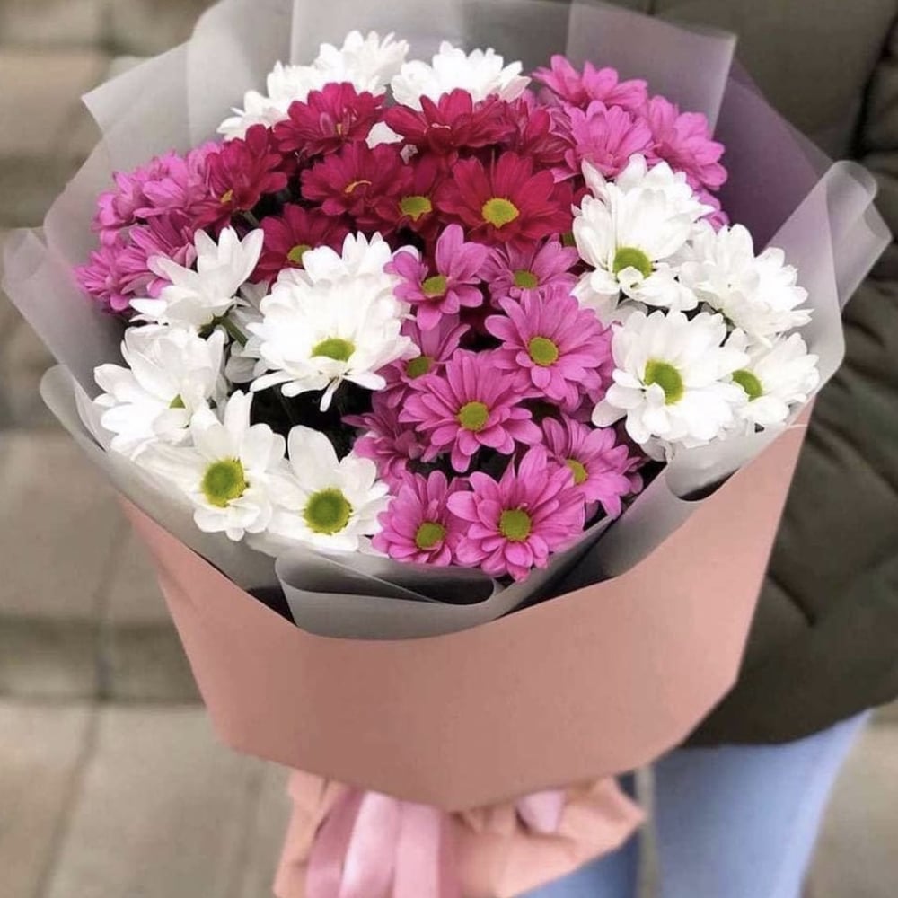 Весенний букет из красивых хризантем.