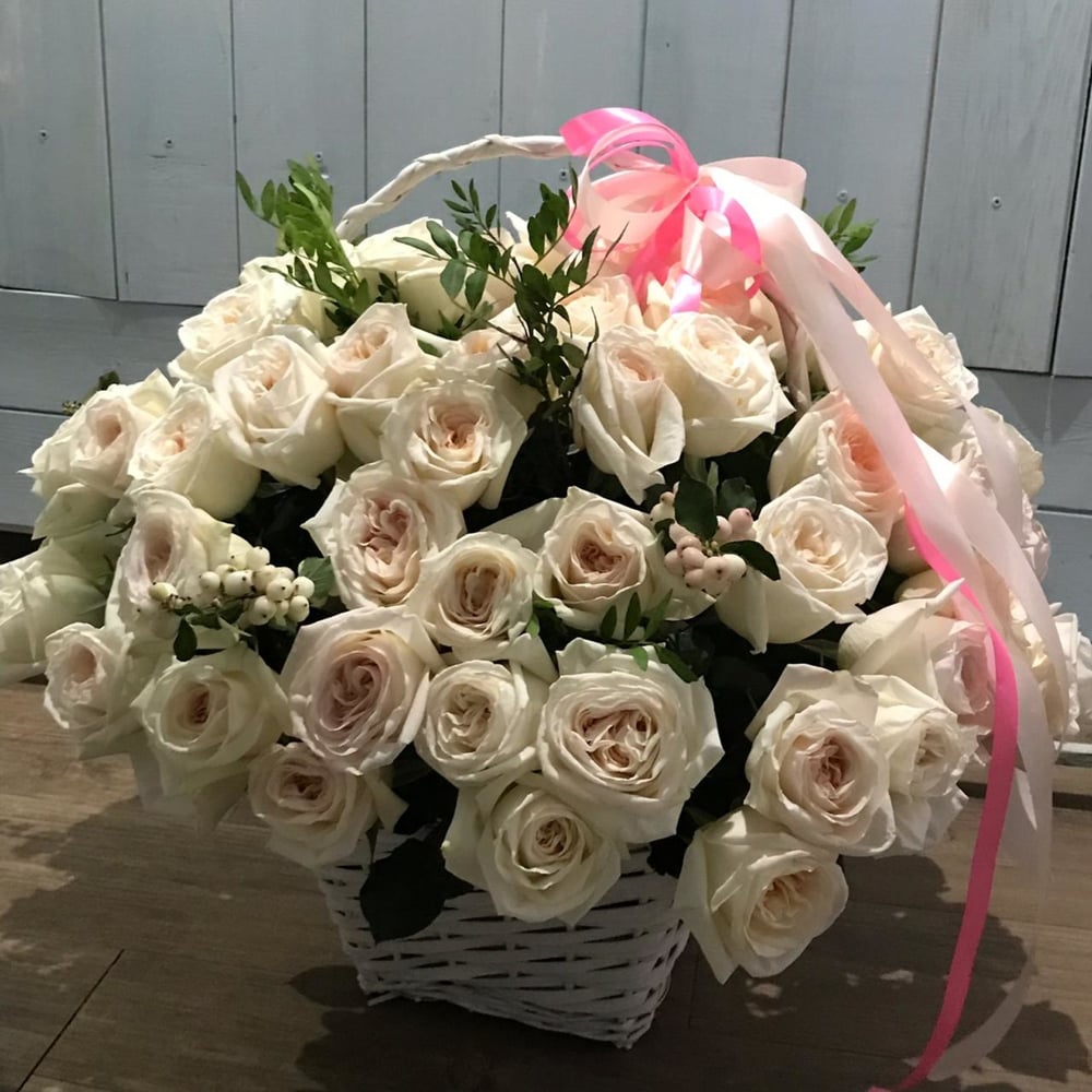 Корзина с цветами «Джульетта» из роз и гипсофил