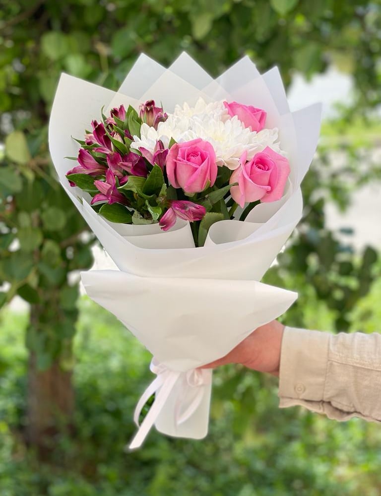 Букет «Эдени» из роз и альстромерий