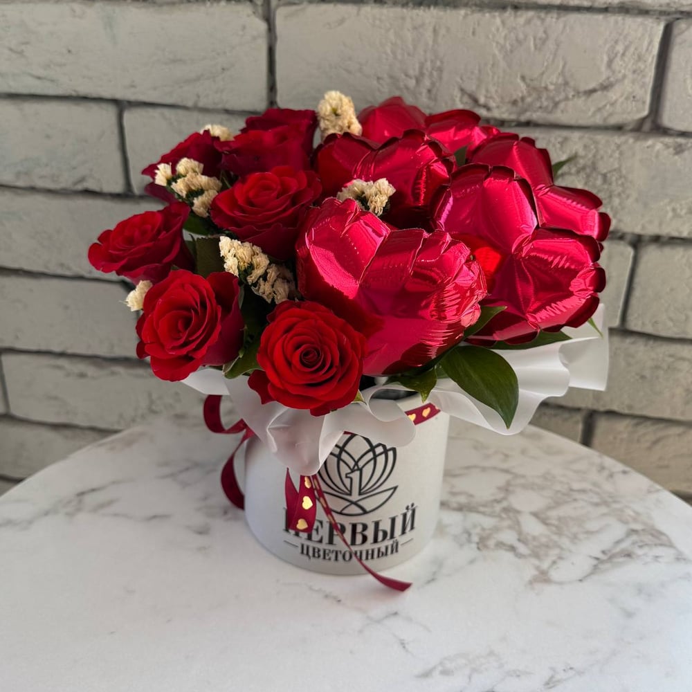 Шляпная коробка с цветами «Эмоции любви» из роз