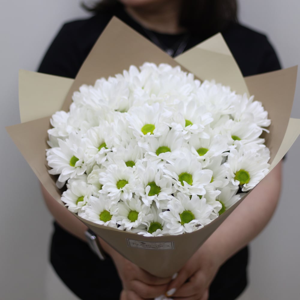 Букет из 7 кустовых хризантем в стильной упаковке.