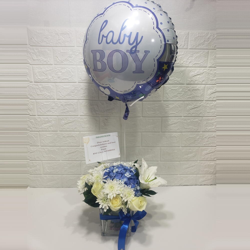 Коробка с цветами «Это мальчик» из роз и хризантем