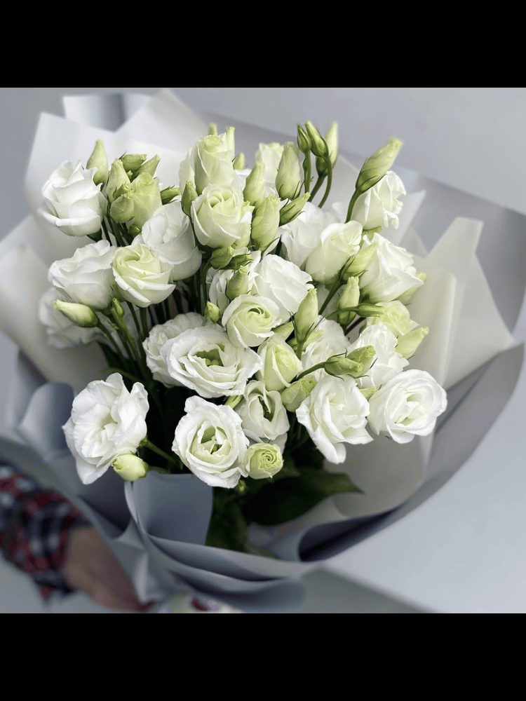 Нежная эустома в стильной упаковке порадует любого Вашего близкого человека