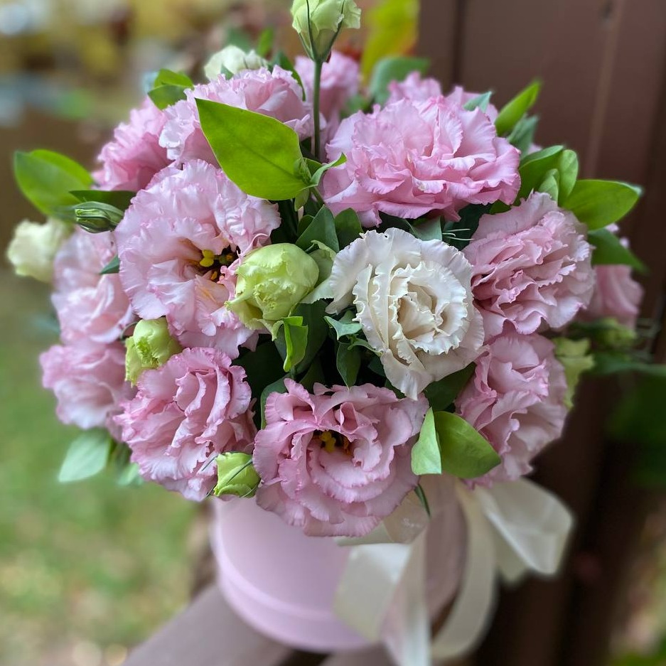Эустома в шляпной коробке