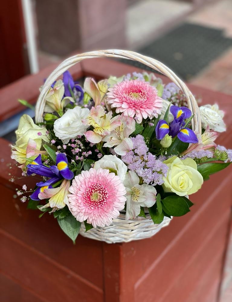 Корзина с цветами «Фарах» из альстромерий и роз