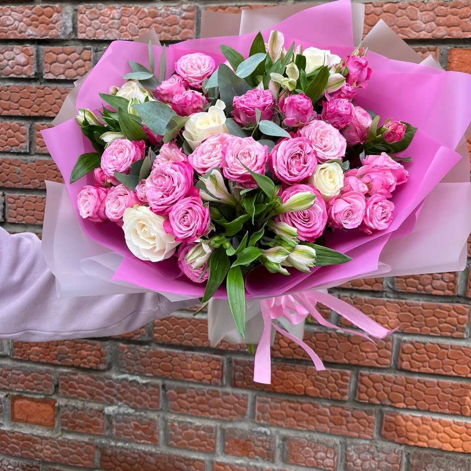 Шикарные кустовые розы с Альстромерией