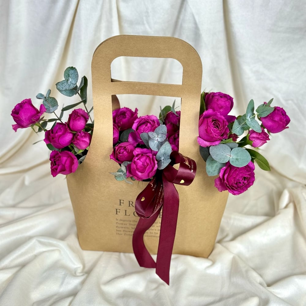 Коробка с цветами «Фиолетовая сумочка» из роз