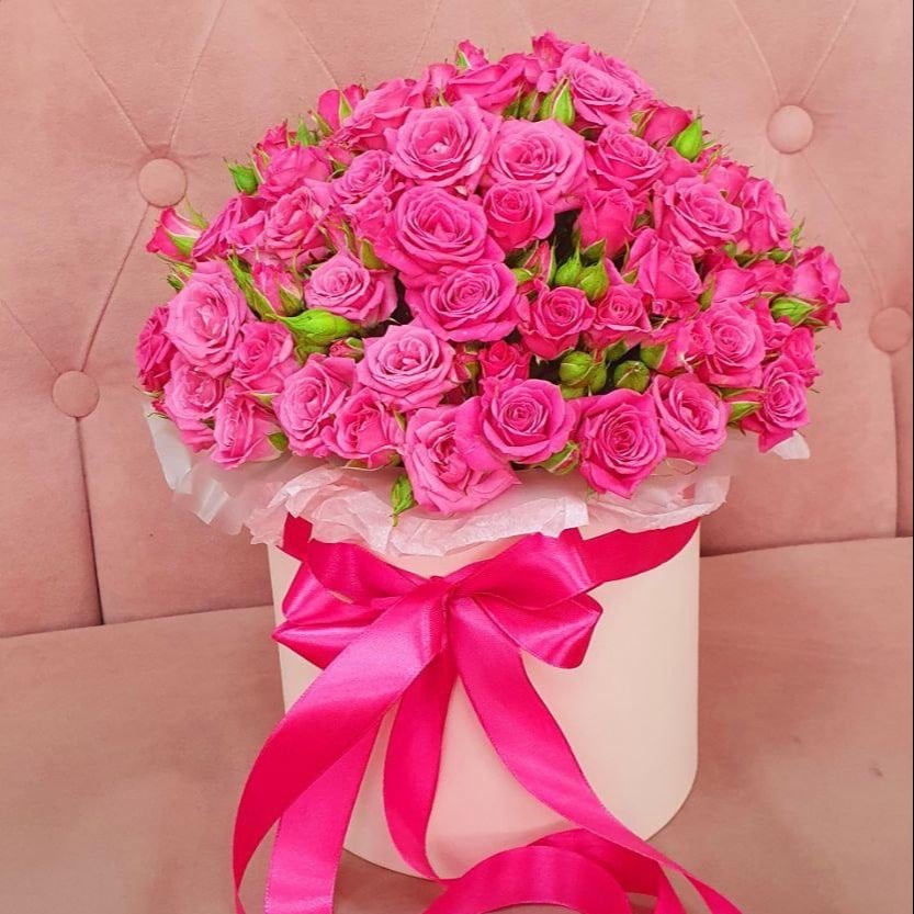 Нежный букет из кустовых роз шляпной коробке, который скажет о ваших чувствах без слов.