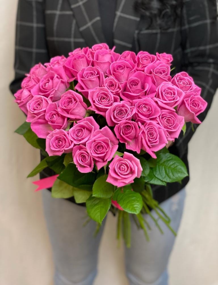 Букет из розовых роз смотрится невероятно нежно и роскошно. Приятный подарок понравится романтичным натурам, поэтому чаще всего его преподносят на свиданиях. Привлекательный внешний вид и легкий аромат цветов сделают любое событие праздничным и радостным. Презентовать композицию из розовых роз можно на День рождения, юбилей или 8 марта. С их помощью удается рассказать о самых чистых намерениях и искренних чувствах. Огромный букет роз подарит незабываемые эмоции и обязательно поднимет настроение. Заказать цветы можно в режиме онлайн, не выходя из дома.