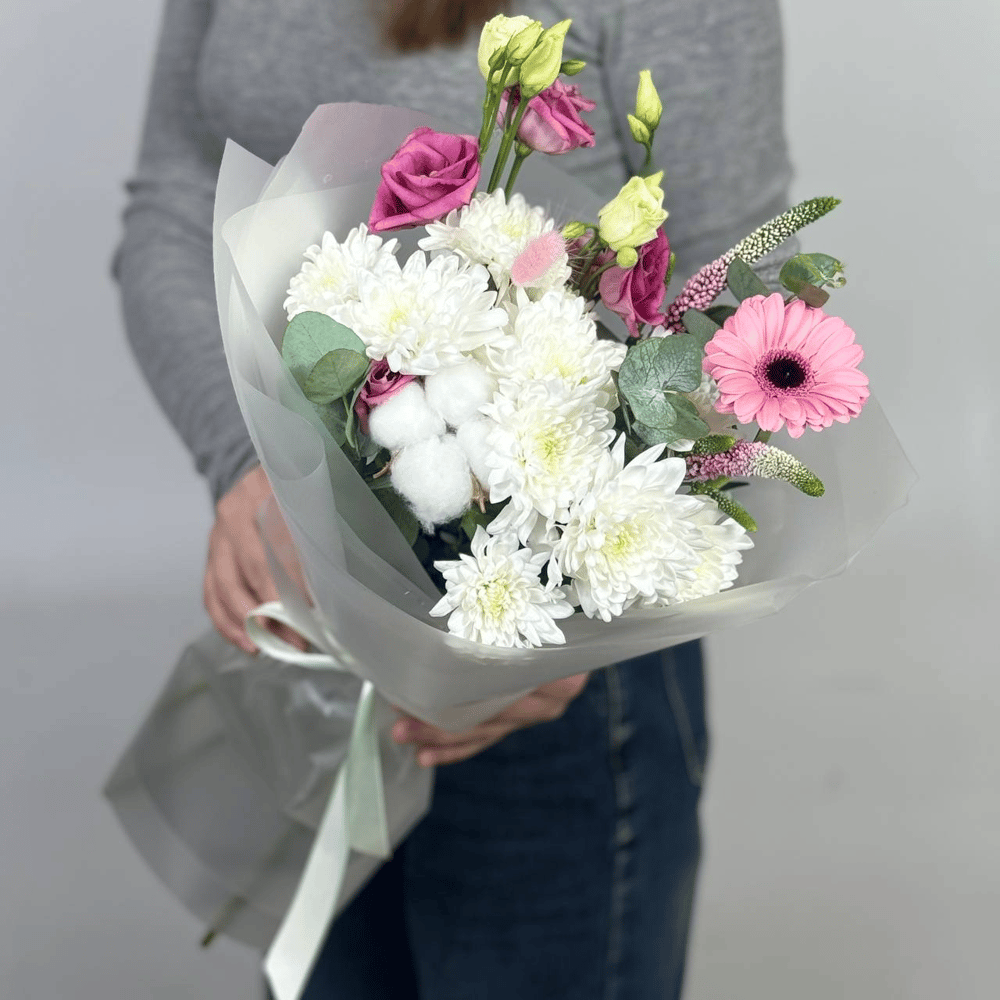 Букет «Флор» из эустом и хризантем