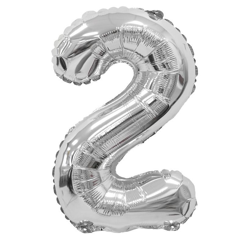 Фольгированный воздушный шар цифра 2 цвет серебро. Размер: 86см.