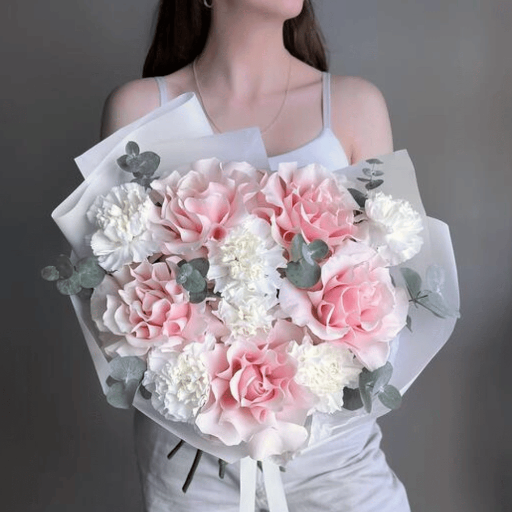 Букет «Французская роза диантус и эвкалипт»