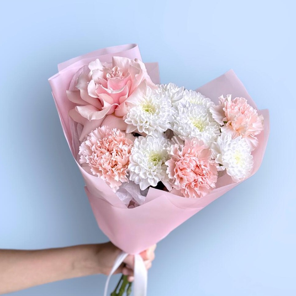 В нашем магазине Пиония предоставлены разнообразные варианты букетов на день рождение , юбилей , свадьбу , Рождество, Новый год , 8 Марта , День влюбленных или просто так. Этот букет подарит незабываемые эмоции , радость и тепло. Особенность в каждом букете : Нежная и элегантная упаковка , современные нежные оттенки , стойкие цветы. Размеры букета указаны с учетом упаковки. Подарите этот неповторимый букет своей любимой девушки , маме , бабушки, сестре , супруги , дочери , мамы , тещи , учителю , выпускной и он будет долго радовать Вас своей красотой и ароматом при правильном уходе !