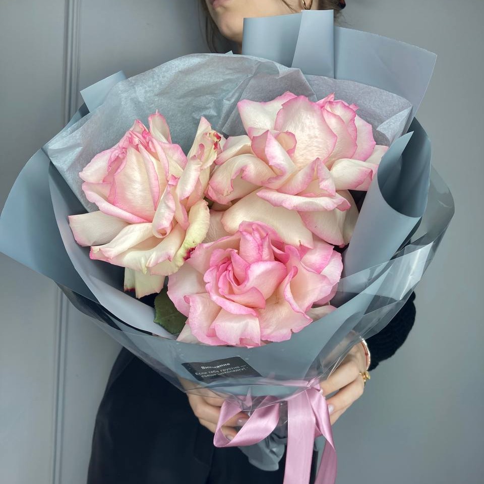 Этот изящный букет состоит из трех роз эсперанса, каждая из которых символизирует нежность и изящество. Цветы обладают нежным оттенком и неповторимым ароматом, что делает этот букет отличным подарк...