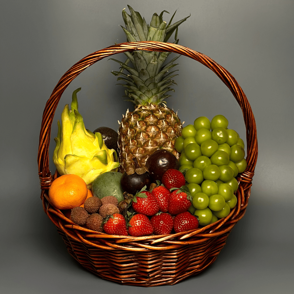 Корзина с фруктовым букетом собрала лучшие тропические дары: спелые фрукты — манго, ананас и маракуйя — гармонично сочетаются с сочными ягодами. Этот изысканный набор фруктов подарит получателю не то…