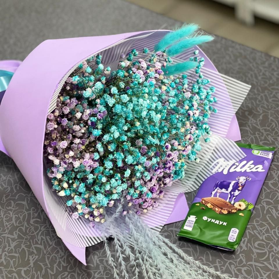 Букет из сухоцветов и гипсофилы порадует любого получателя!
