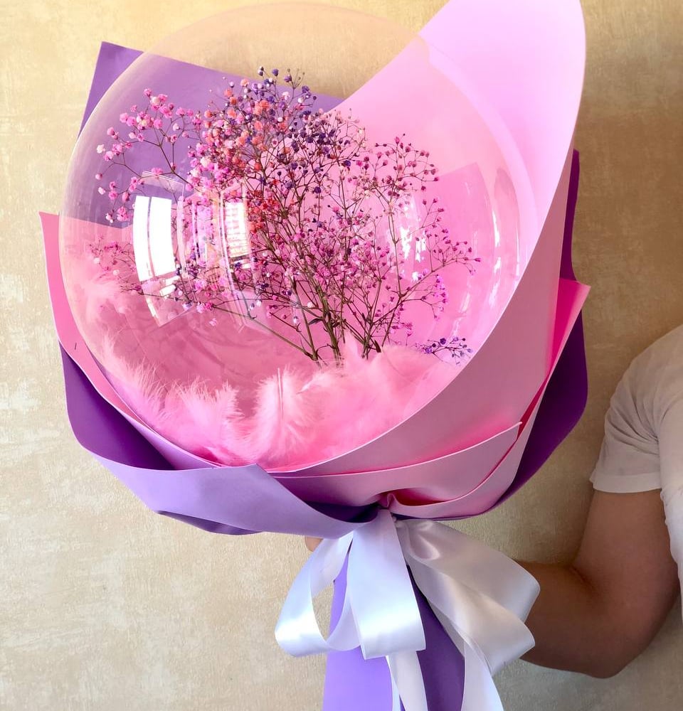 Подарочный набор «Гипсофила в шаре с перьями»