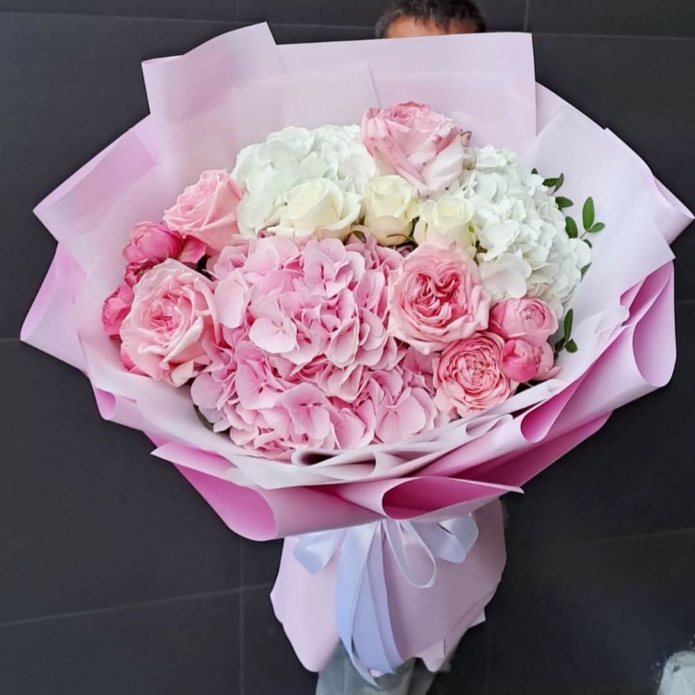 Букет «Гийо» из гортензий и роз