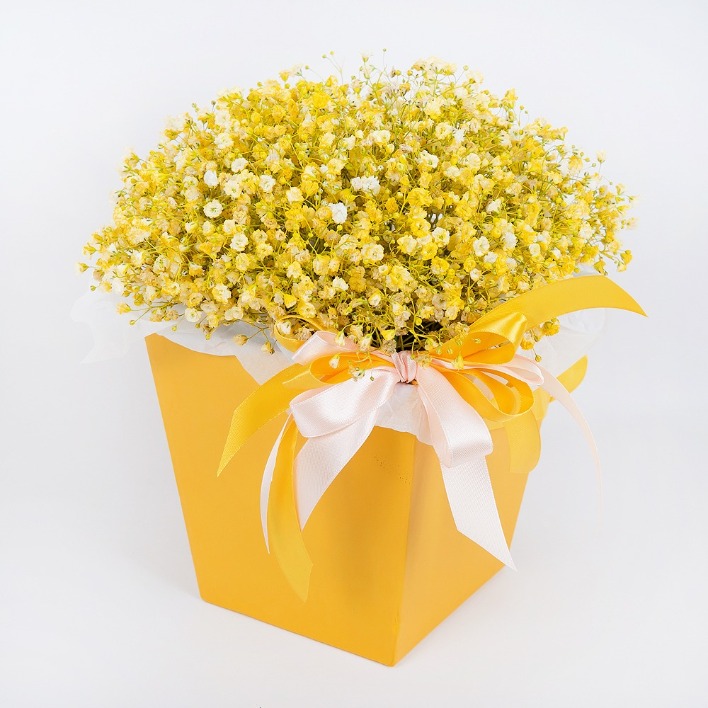 Откройте для себя волшебство жёлтых гипсофил в композиции «Золотые пески»! Эти нежные цветы создадут атмосферу тепла и уюта в вашем доме, напоминая о солнечных днях и летних пляжах.