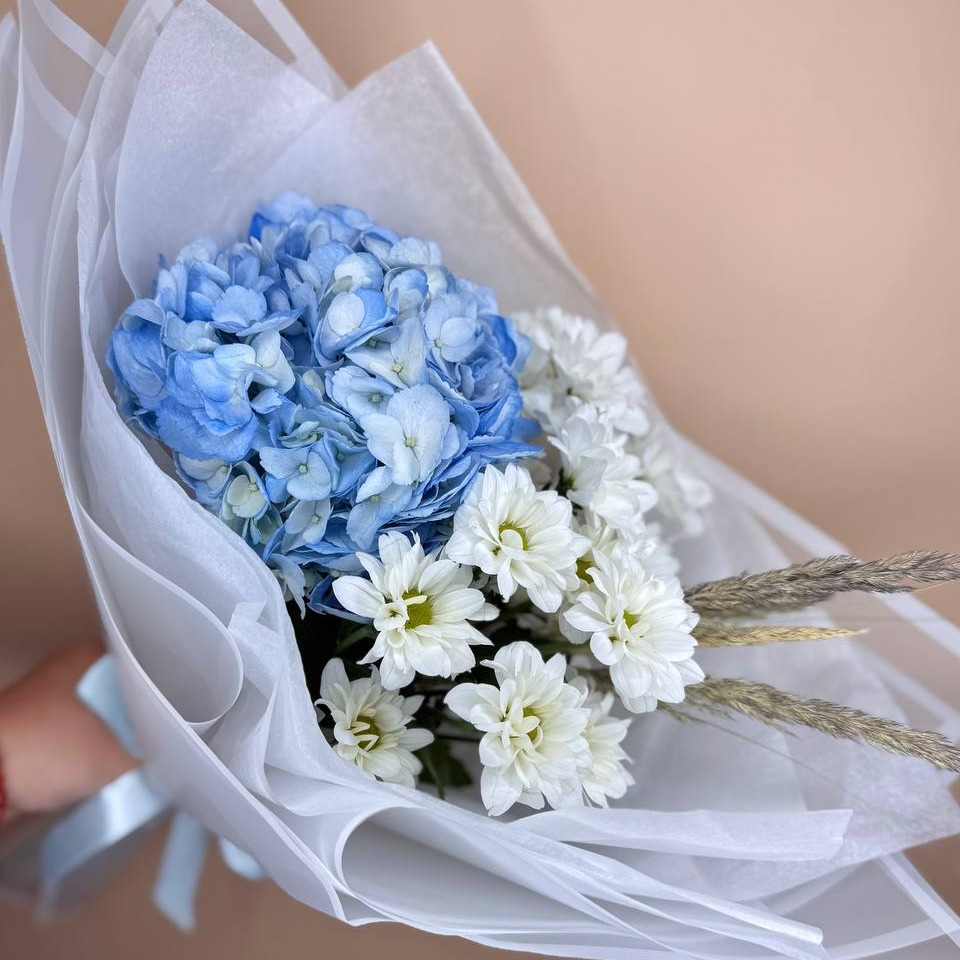 Букет «Голубая гортензия и хризантема»