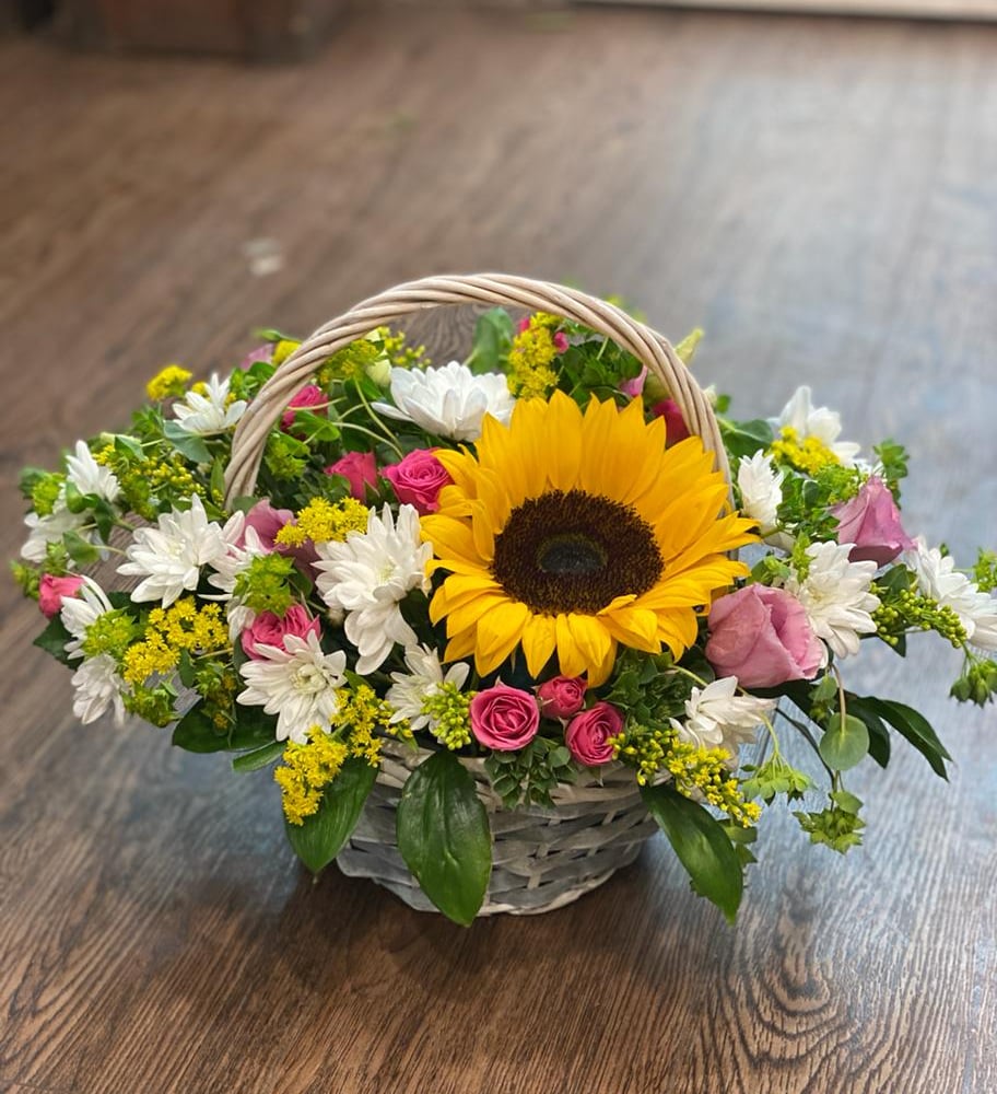 Корзина с цветами «Гордон» из эустом и роз