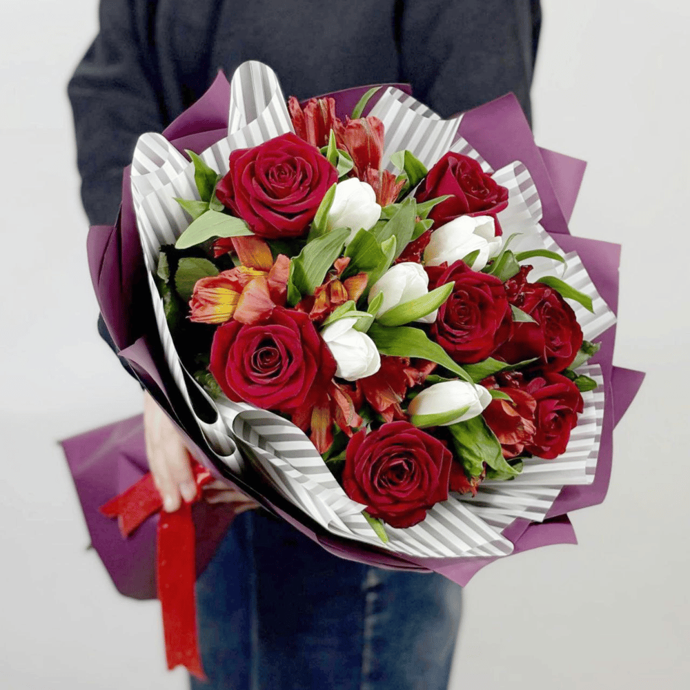 Букет «Горный ручей» из роз и альстромерий