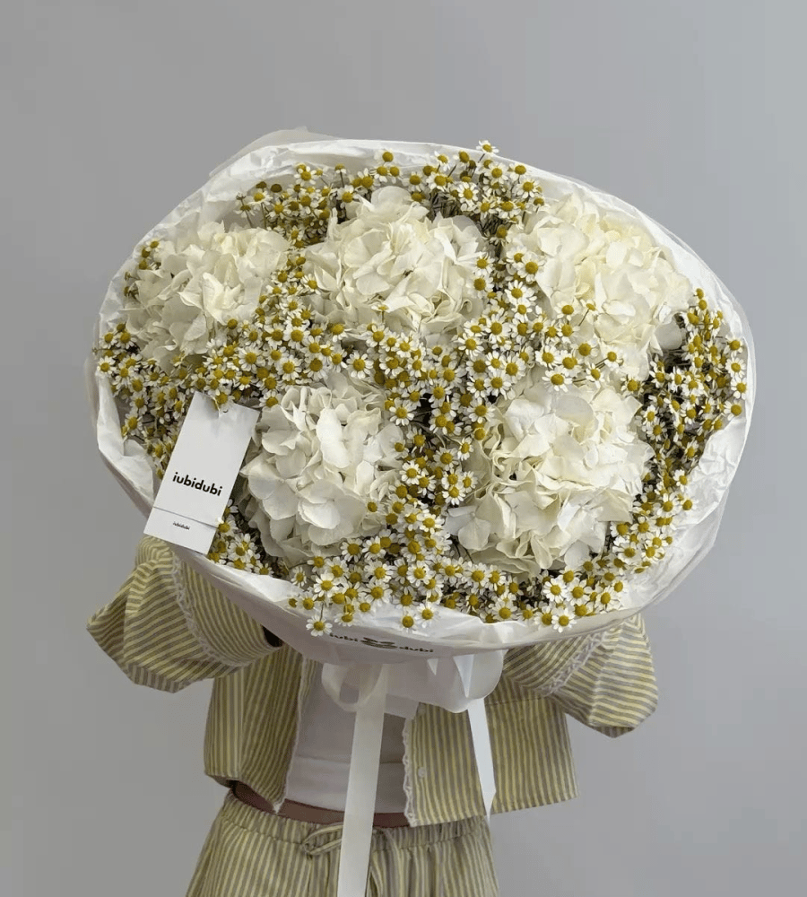 Нежнейшее сочетание пушистых гортензий с кустовыми ромашками🤩