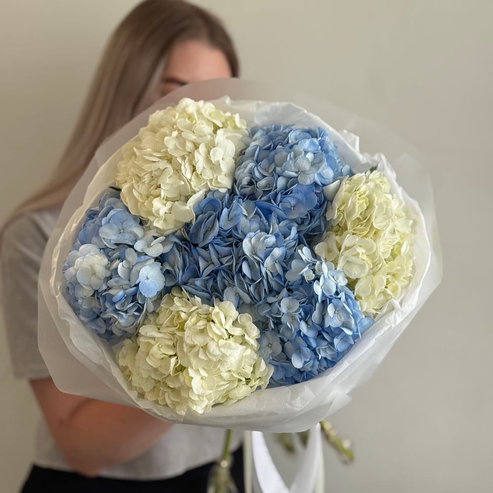Букет «Гортензии синие с белыми в нежном миксе»