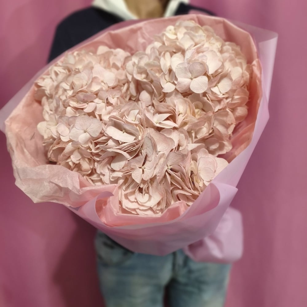 Светлорозовые пышные гортензии
