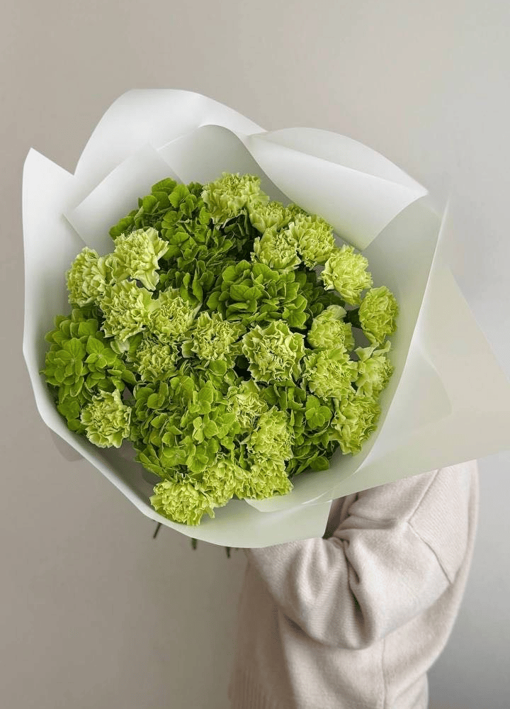 Букет «Гортензия зеленая с гвоздиками стойкими»