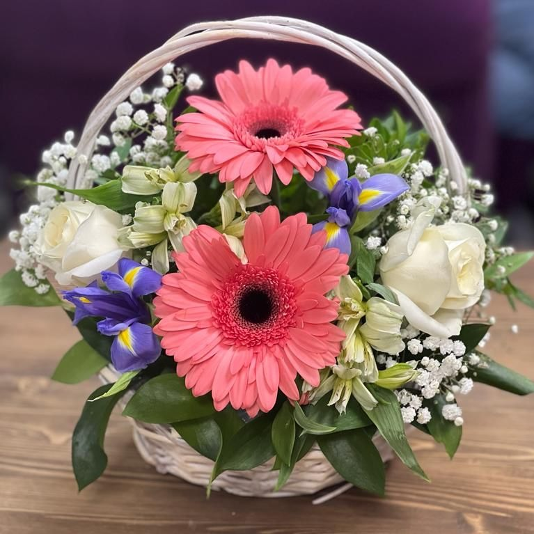 Корзина с цветами «Грациозная Красота» из альстромерий и роз