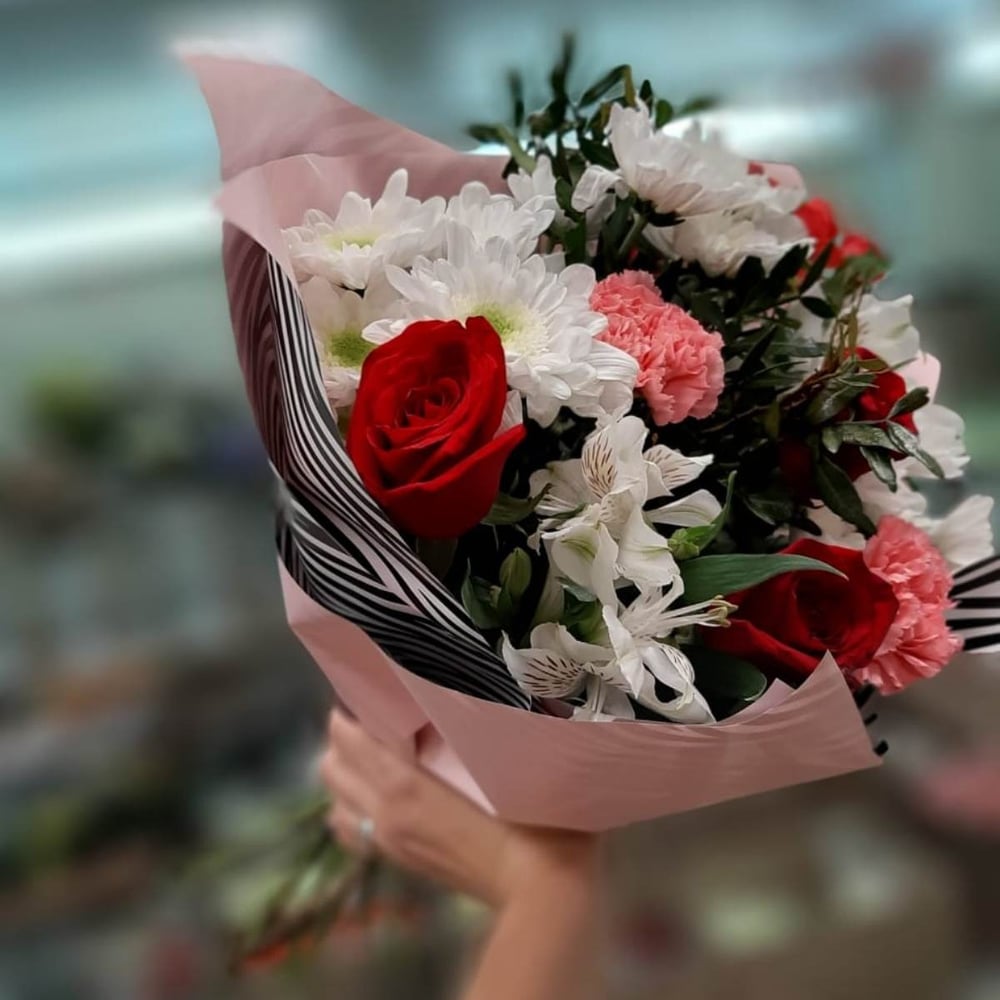 Букет «Греция» из роз и хризантем