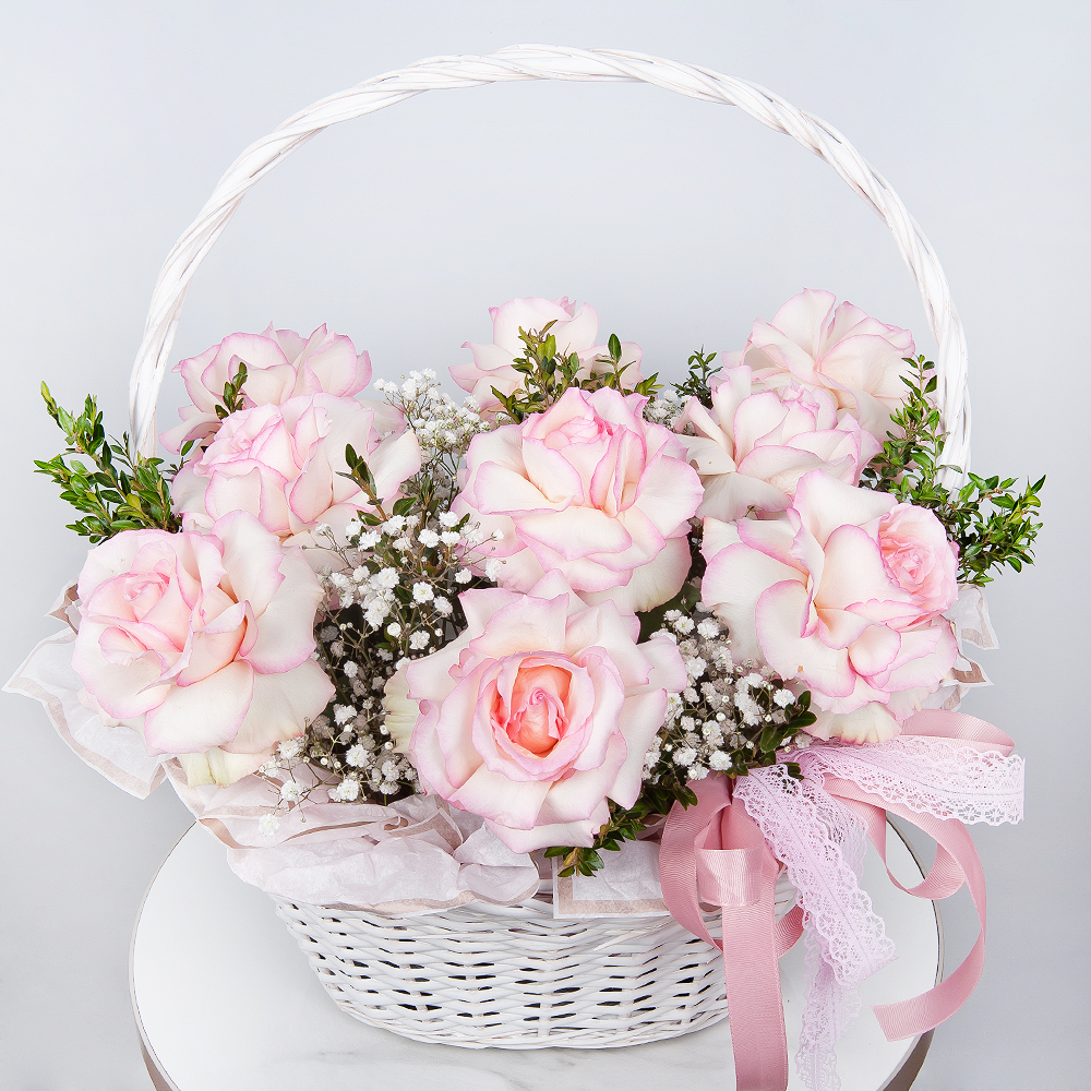 Этот букет воплощает романтические грезы, сочетая розовые розы из Эквадора, гипсофилу и фисташку. Упакованный в корзину и современную упаковку, он станет прекрасным способом выразить свои чувства и п…