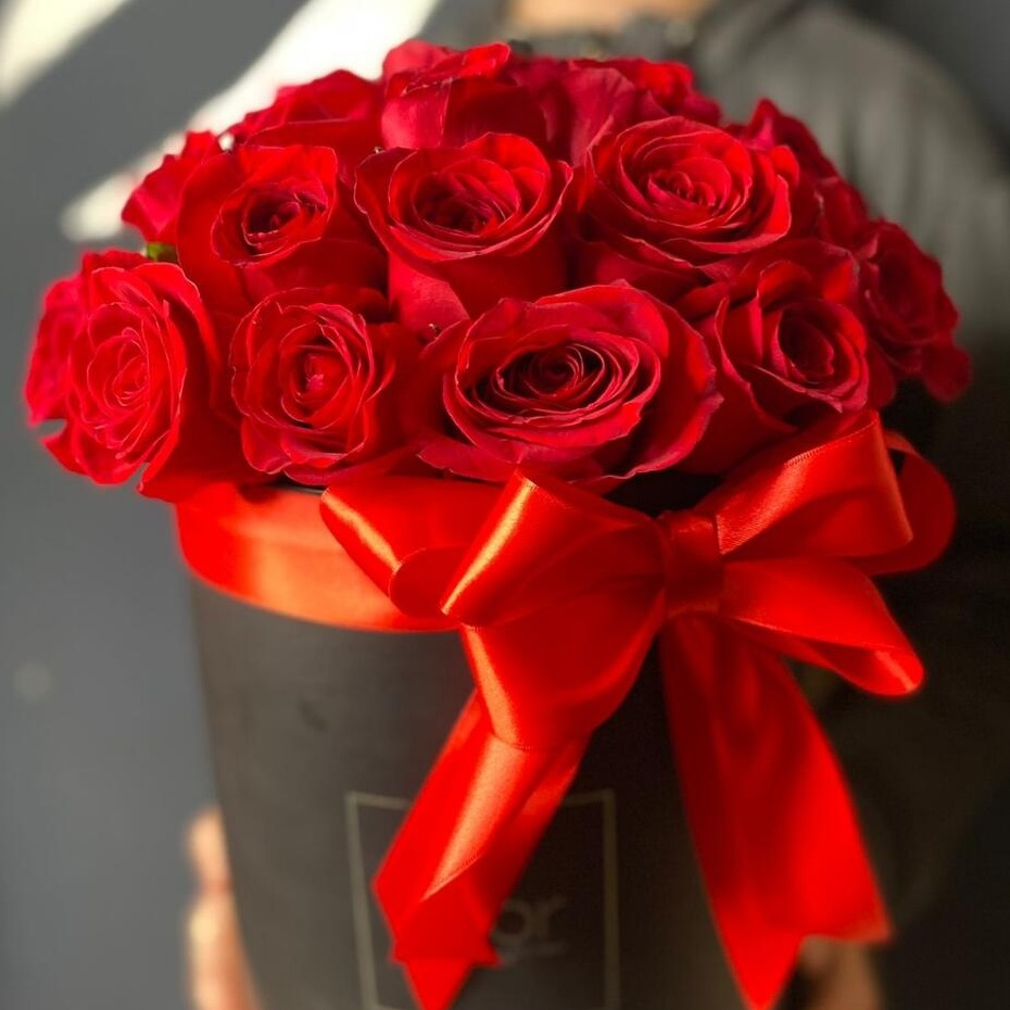 Шляпная коробка с цветами «Гусар» из роз