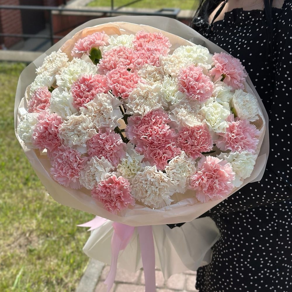 Букет «Гвоздика розовая и белая в нежном миксе»