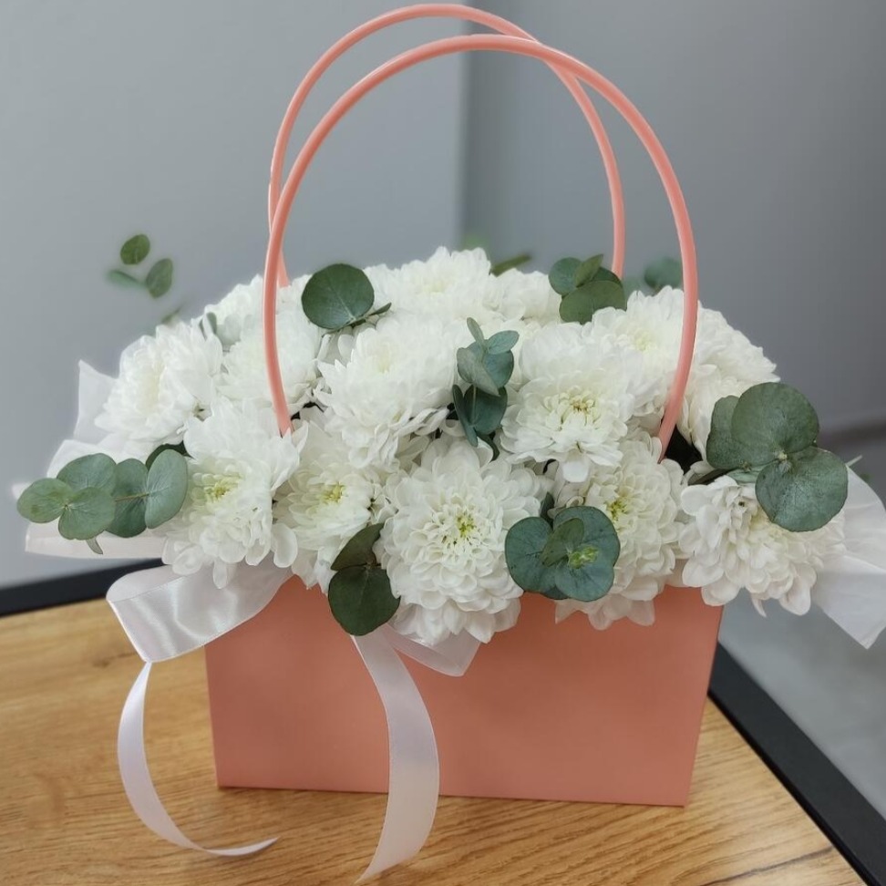Коробка с цветами «Хризантема в сумочке»