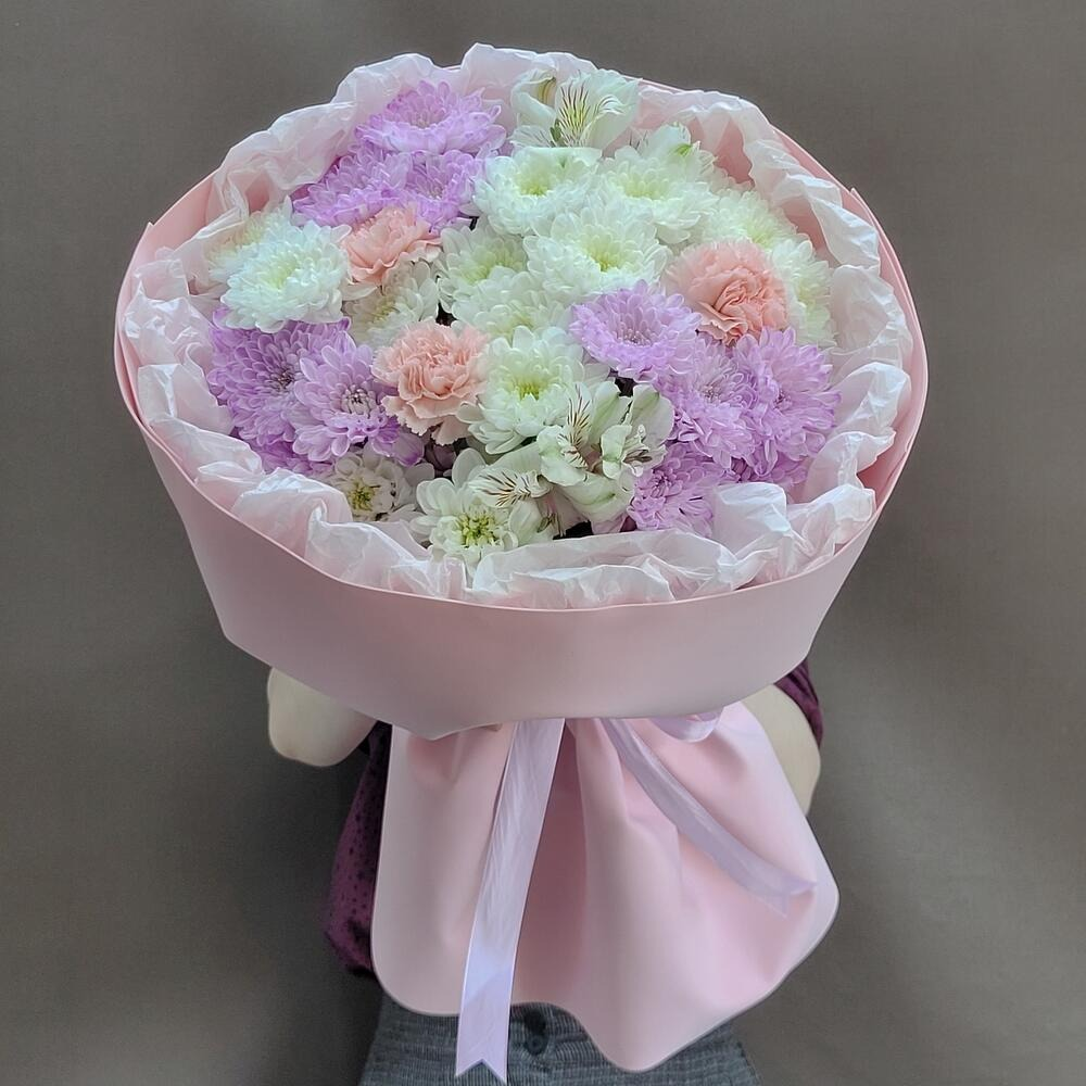 Букет «Хризантемы, диантусы и альстрамерия маме»